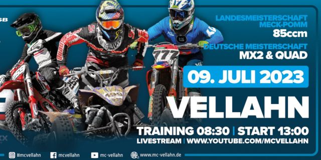 Zu Gast sind an diesem Wochenende die Sportlerinnen und Sportler der Landesmeisterschaft 85 ccm Mecklenburg-Vorpommern im gemeinsamen Wettkampf mit ihren Altersklassen aus den Bundesländern Berlin und Brandenburg. Der MC Vellahn e.V. als Veranstalter von Deutschen Meisterschaften der Jugend und Europäischen Titelkämpfen freut sich in diesem Jahr auch einmal wieder die regionale Nachwuchsserie in der Vellahner Heide begrüßen zu dürfen.
